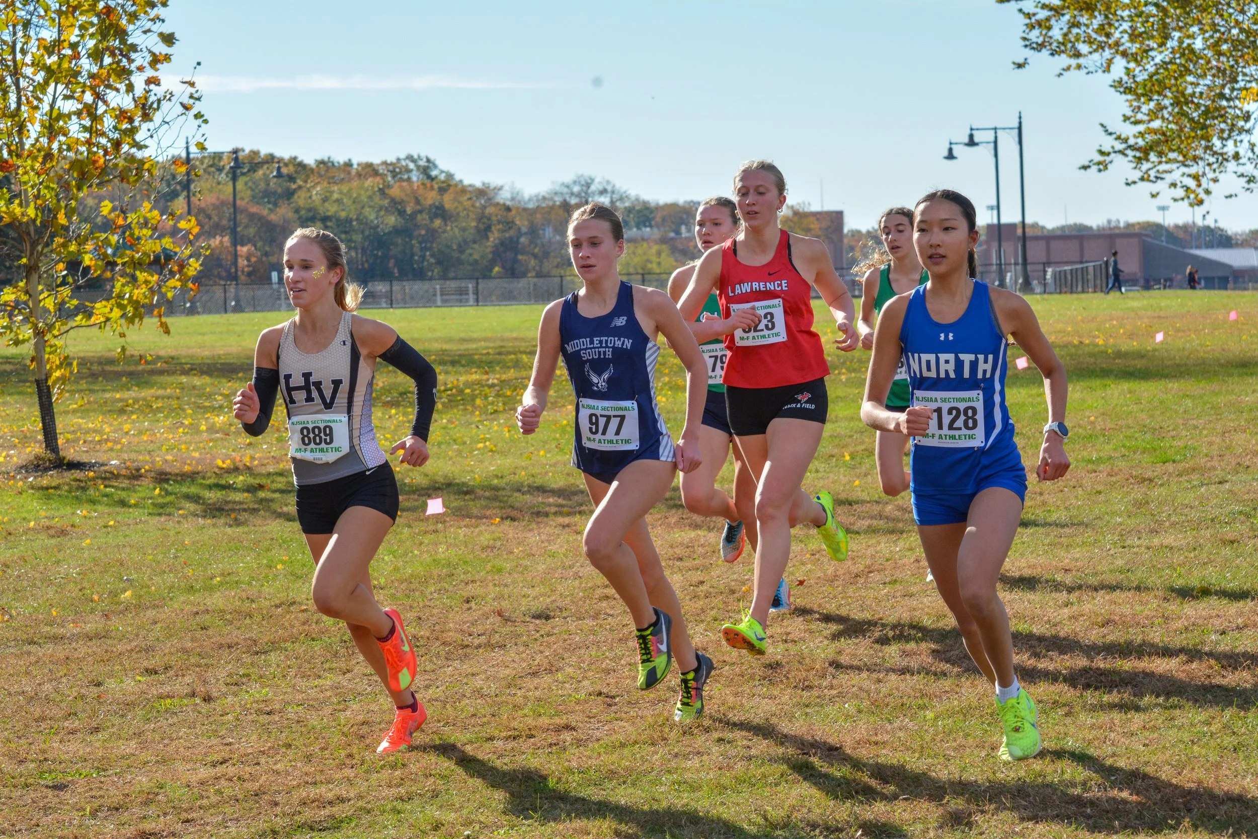 Individuals. Defending champion Allison Lee cruised at the front of this race for two miles, running with five other girls that also included Hopewell Valley’s Sydney Young and Lawrence’s Izzy Meth. But then Lee dropped the hammer on the hills, pulling away to claim the sectional title by 17 seconds over Middletown South’s Amelia Pattwell. The senior’s winning time was 18:10, a result that was both impressive and also left plenty in the tank for next week at Holmdel.
