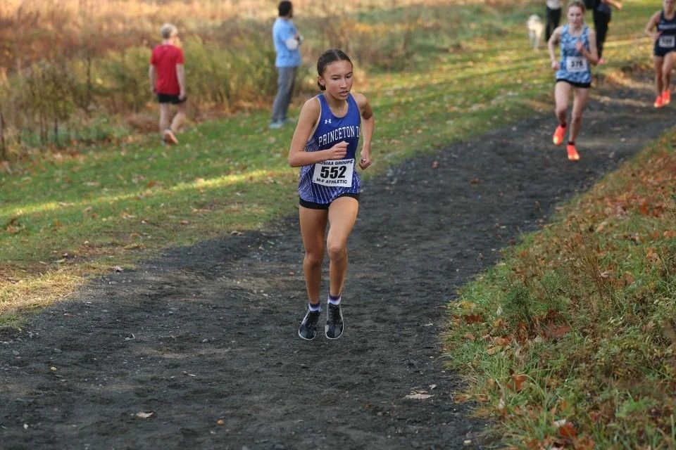 Princeton’s Kajol Karra finished in 12th to lead the Princetons girls to 2nd place in the Group 4 race at the Group Championships 2025. | Tom Smith for MileSplit