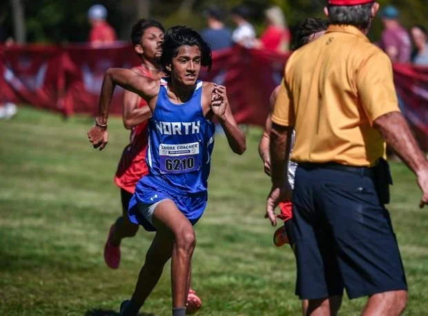 Veejay Roy (WWP North) kicks hard in the Varsity C race at the Shore Coaches Invitational. | Tom Smith for MileSplit