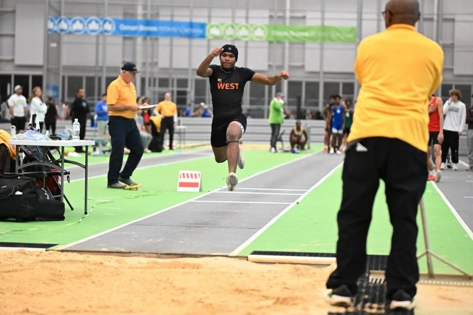 In the triple jump at SJTCA #5, Hamilton West senior Damario Marshall joined the 40’ club with a big PR of 41-3 for 2nd place, which is #1 in Mercer County. Steinert senior Arlington Michel finished 5th in 38-1.75, on a busy day where he also ran the 55m and 200m.