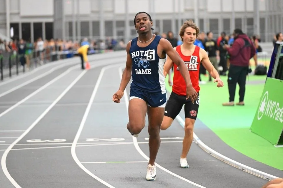 Notre Dame’s Jayden Davis took 13th in the 200m at SJTCA #5 with an indoor PR of 23.56. He placed just ahead of Ewing sophomore Domonique Jones, who just about matched his outdoor PR with a 23.60 for 15th place. In the 55m, Hamilton West’s Jamel Cheeseborough-Williams won his heat and placed 30th overall in 6.98, breaking 7 for the first time.